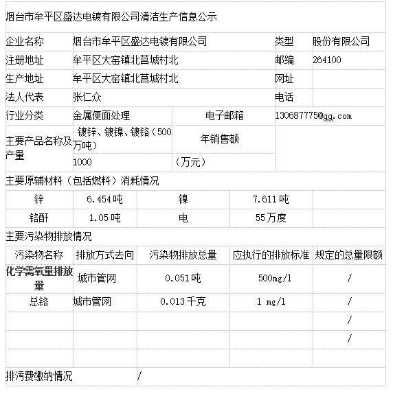 煙臺市牟平區(qū)盛達電鍍有限公司清潔生產(chǎn)審核公示
